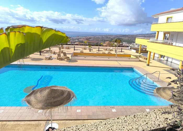 Das 1-Zimmer-Apartment Residencial Sunset 2 Bedrooms En Calle Galicia 43 Costa Adeje mit Blick auf die Stadt liegt in etwa 25 Gehminuten Entfernung vom Strand Praia El Duque in Costa Adeje. Dieses 60 m² große Apartment ist mit einer Terrasse ausgestattet, von der aus Sie einen Küsten- Blick aufs Meer genießen können.